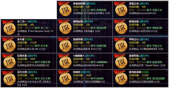 合成成就新增了14种成就,分别是合成特定物品111次。接下来将根据系别和难度对成就进行简析。注:成就名称和称号根据合成次数会有所变化。